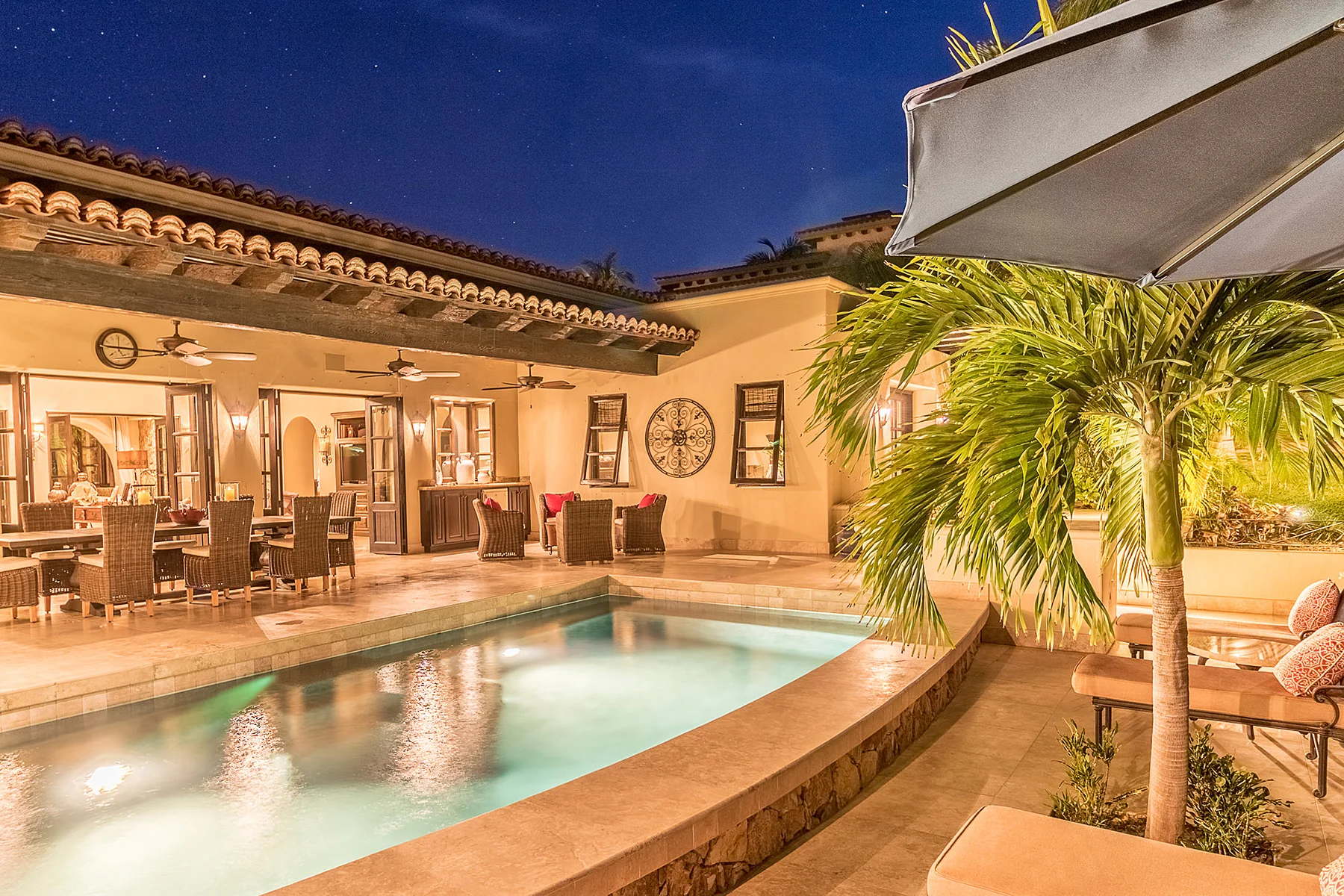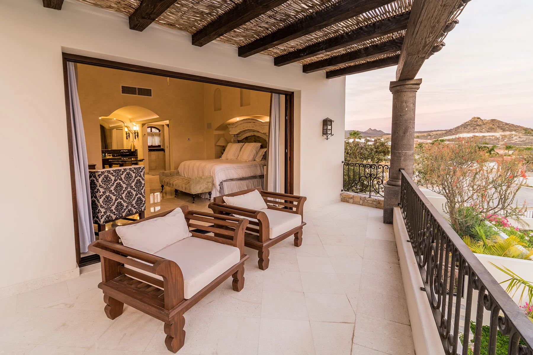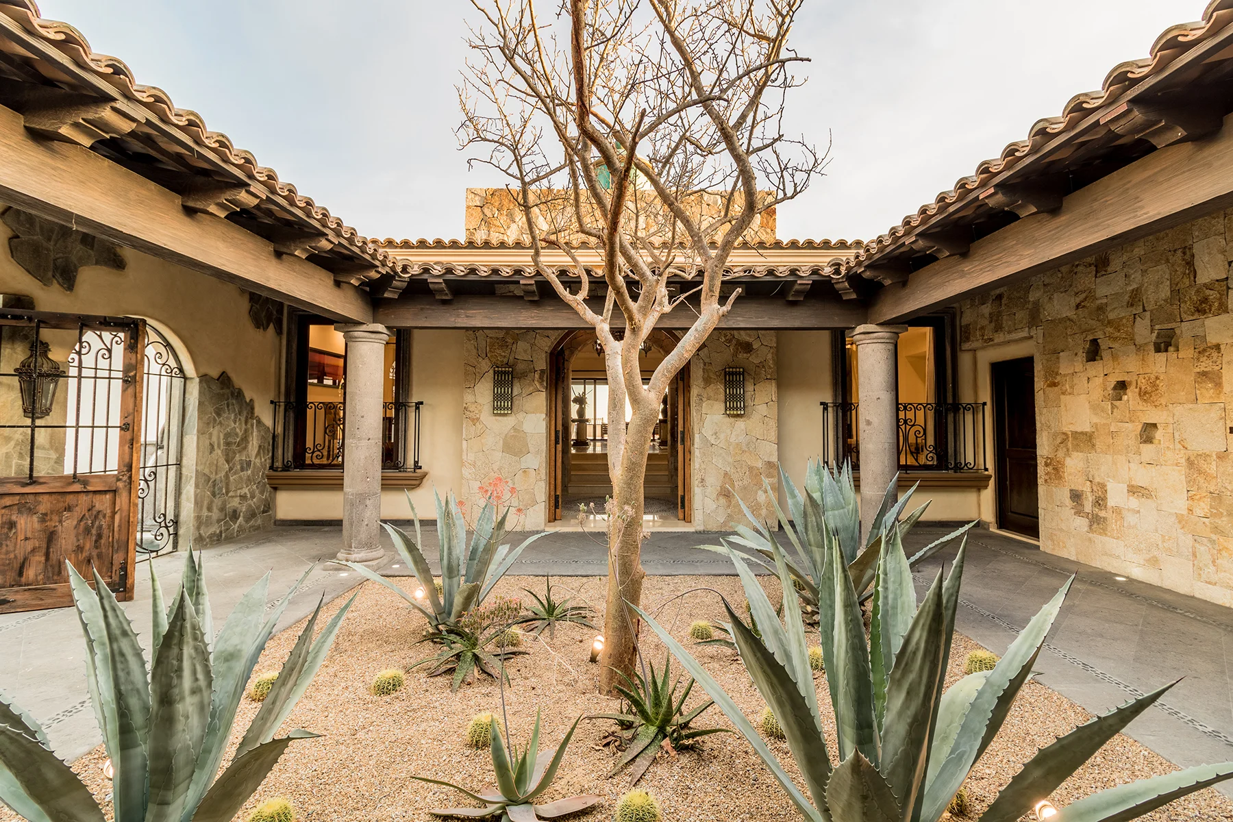 Casa Brisas fue diseñada para potencializar al máximo el concepto de la vida interior-exterior gracias a sus ventanas de gran tamaño, puertas francesas, amplios patios y terrazas, y su impresionante alberca. La extensa propiedad presenta líneas rectas, paredes gruesas, y asombrosos detalles de madera, además de vigas expuestas y texturas. La paleta de colores neutros mantiene la continuidad visual de una habitación a la otra, utilizando tonalidades suaves y atractivas, complementando así, la cálida temperatura que hay en San José del Cabo todo el año.