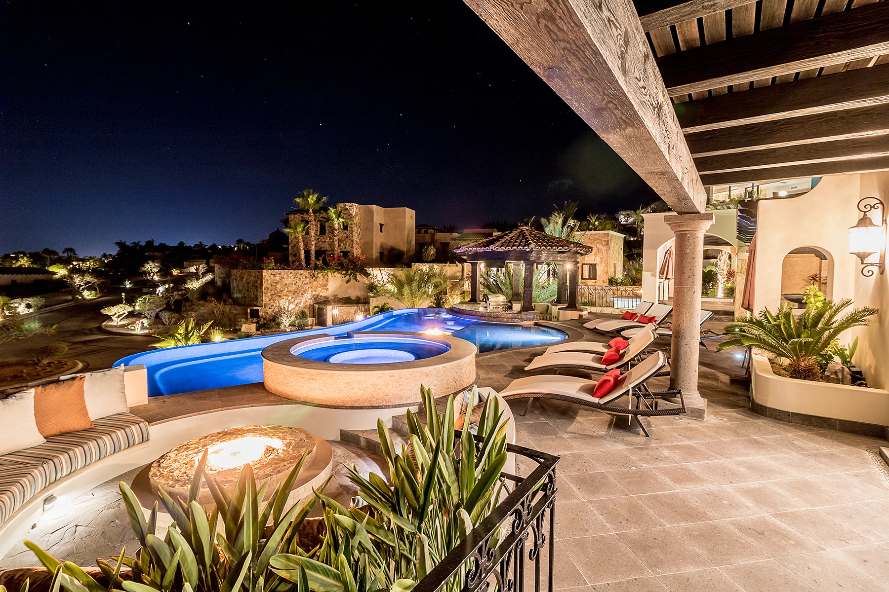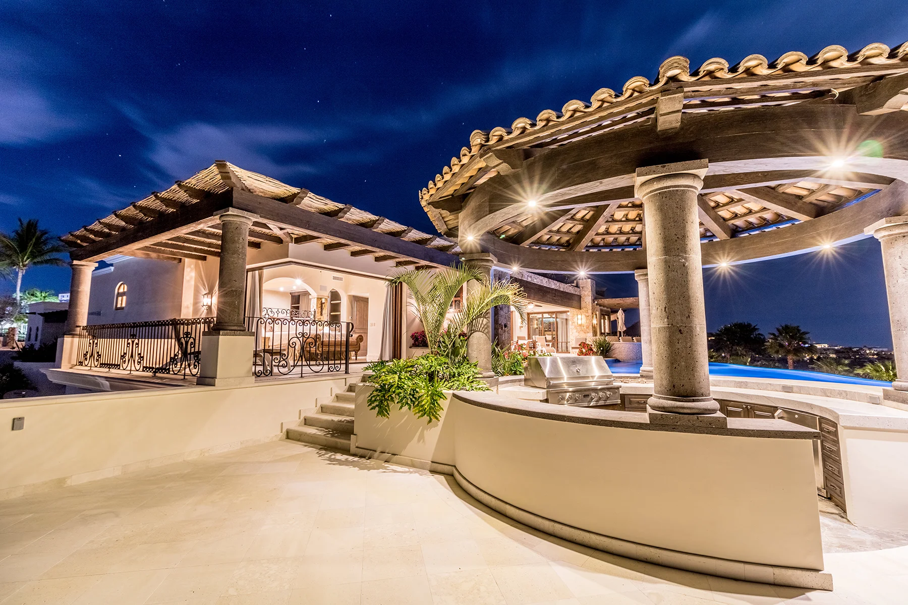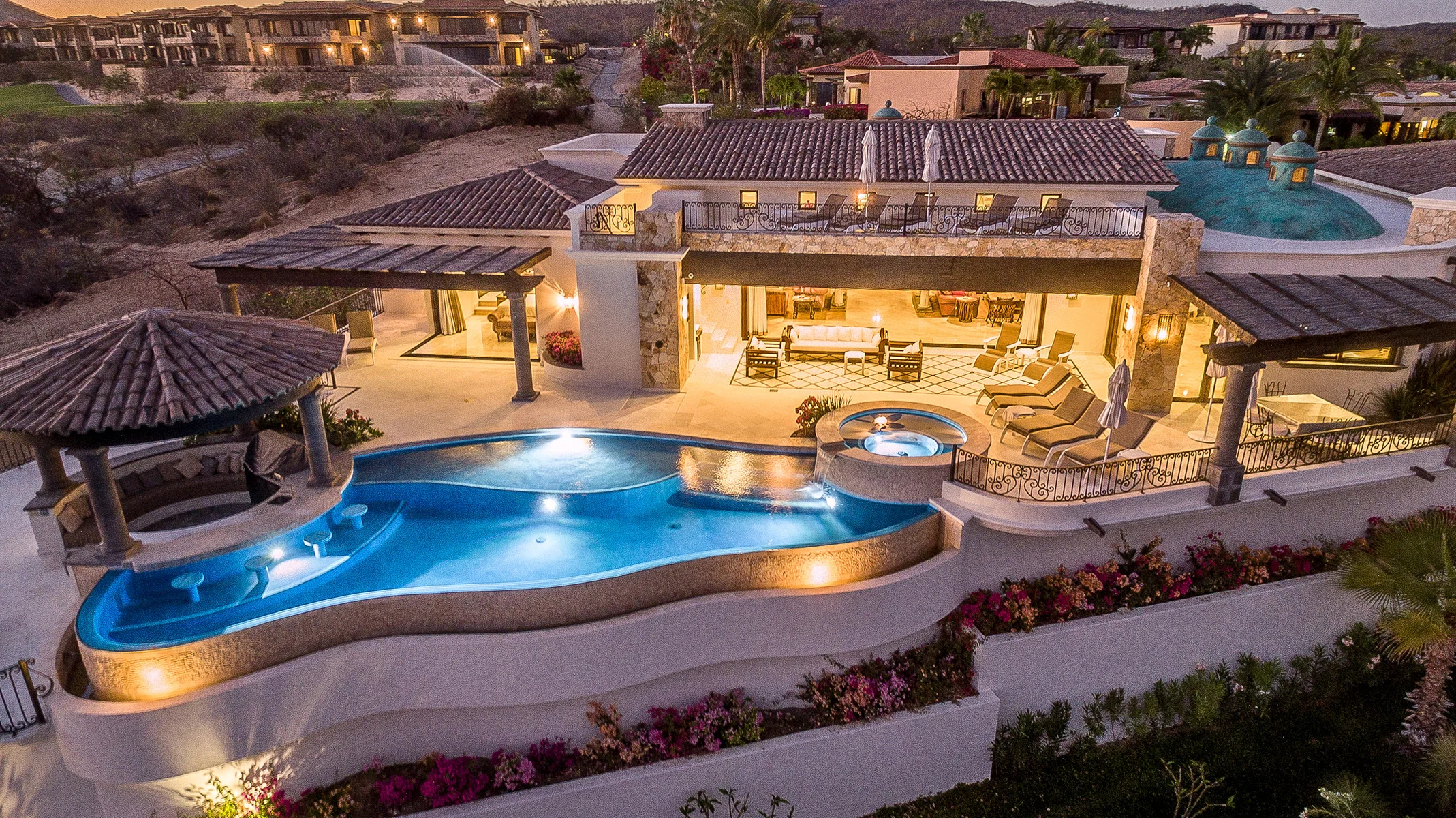 Casa Brisas fue diseñada para potencializar al máximo el concepto de la vida interior-exterior gracias a sus ventanas de gran tamaño, puertas francesas, amplios patios y terrazas, y su impresionante alberca. La extensa propiedad presenta líneas rectas, paredes gruesas, y asombrosos detalles de madera, además de vigas expuestas y texturas. La paleta de colores neutros mantiene la continuidad visual de una habitación a la otra, utilizando tonalidades suaves y atractivas, complementando así, la cálida temperatura que hay en San José del Cabo todo el año.
